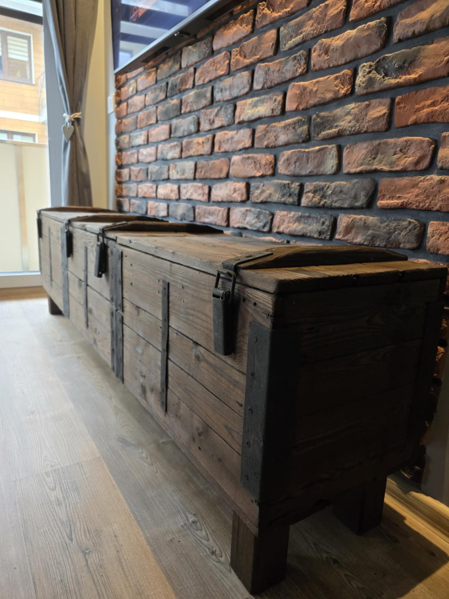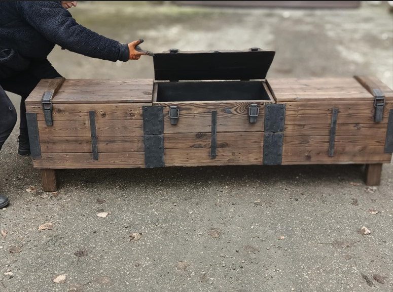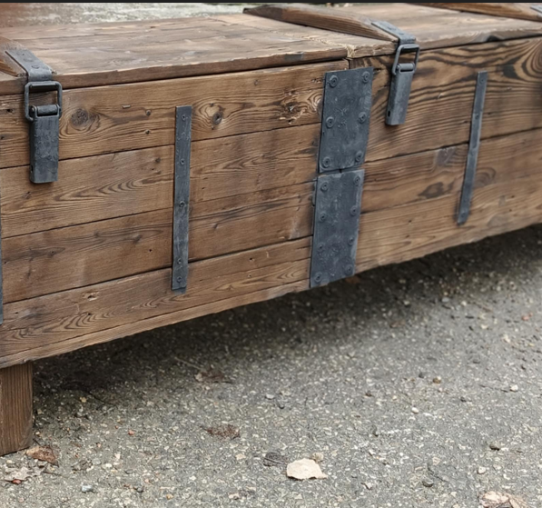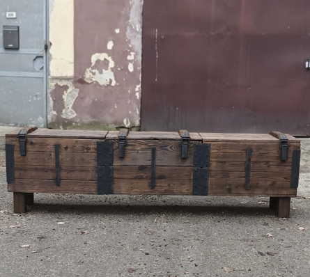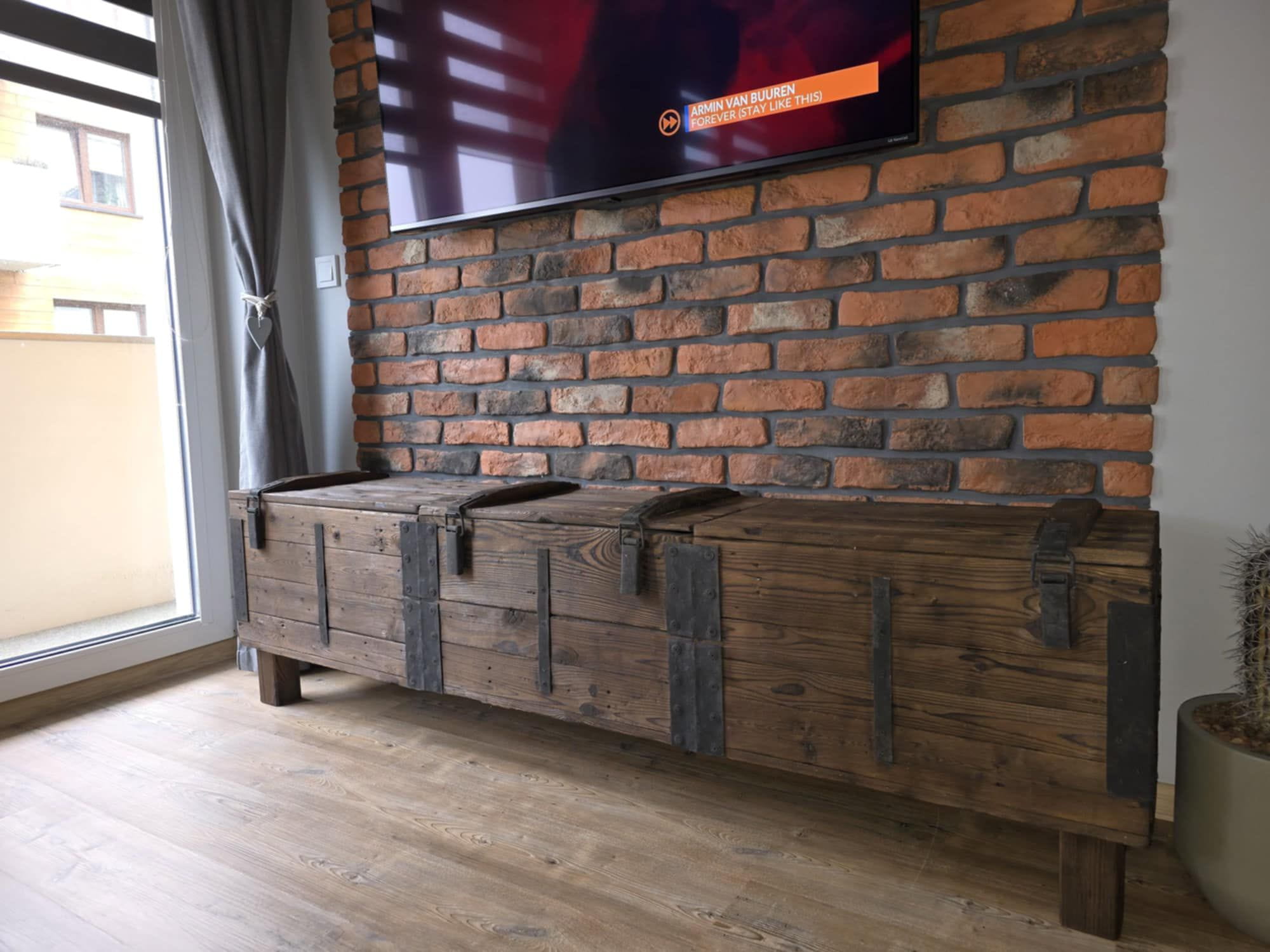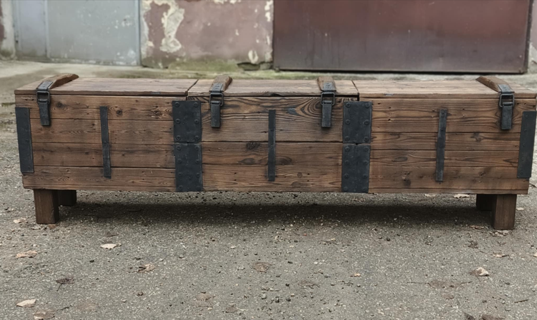 Komoda jest otwierana, więc może pełnić funkcję szafki.To, co wyróżnia komodę RTV ze skrzyni wojskowej to fakt, że jest w całości ręcznie wykonany z materiałów recyklingowych, a do jego konserwacji użyto naturalnego oleju lnianego.