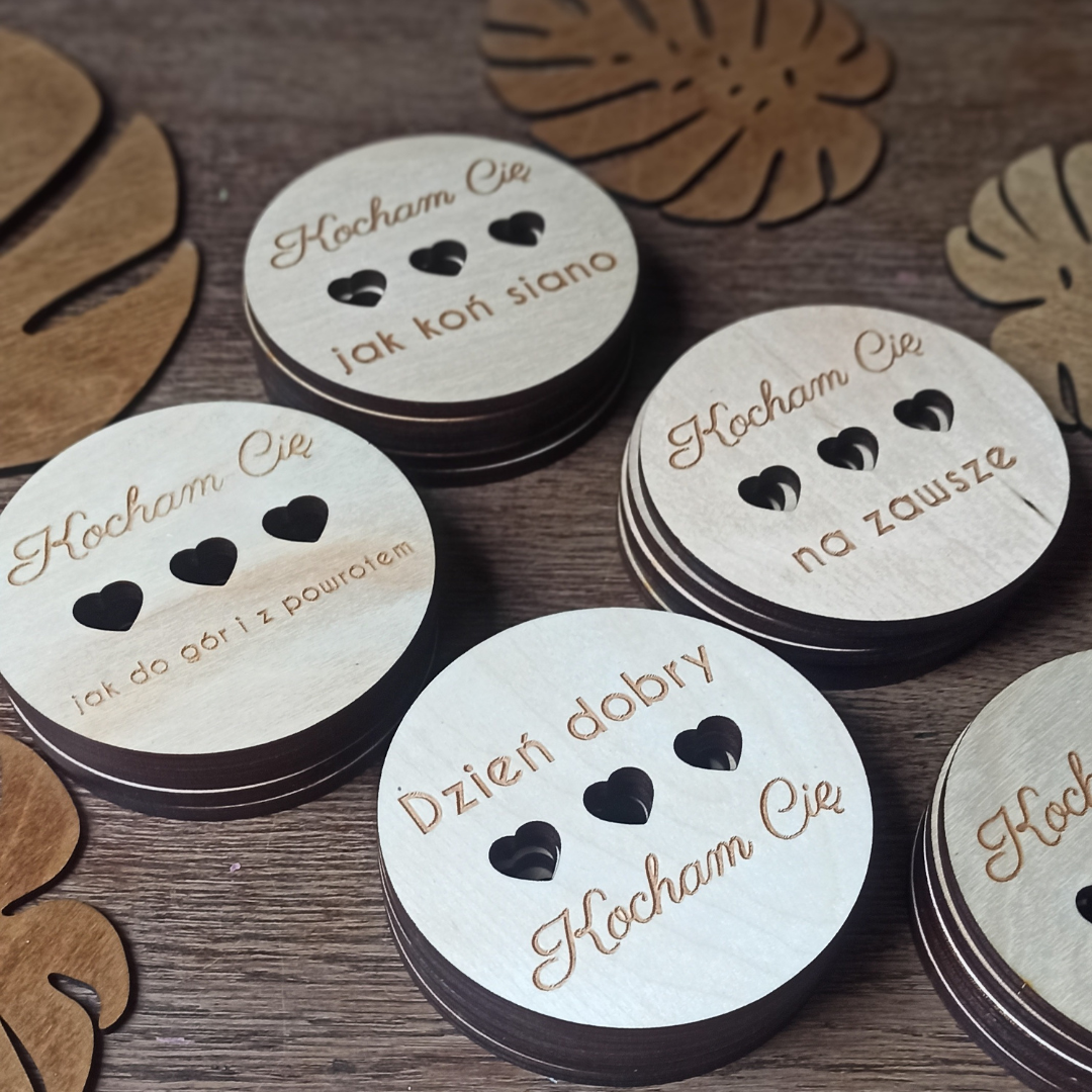 Podaj kawę, herbatę lub talerz na wyjątkowych drewnianych podstawkach w modnych wzorach.